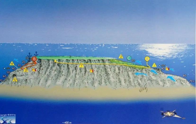 Elphinstone is a legendary reef known for its dramatic steep descents and two plateaux, making it a favored spot for experienced divers. The site often experiences strong currents, adding to the challenge and excitement of diving here.